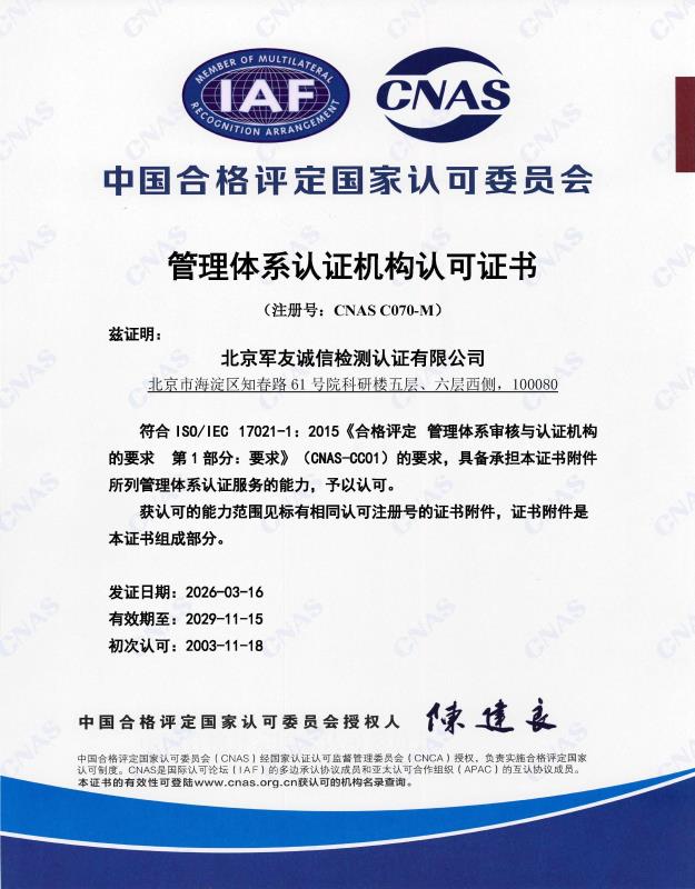 北京军友诚信检测认证有限公司高薪诚聘专兼职审核员