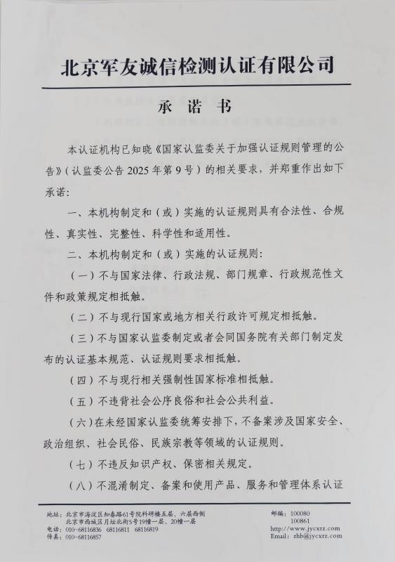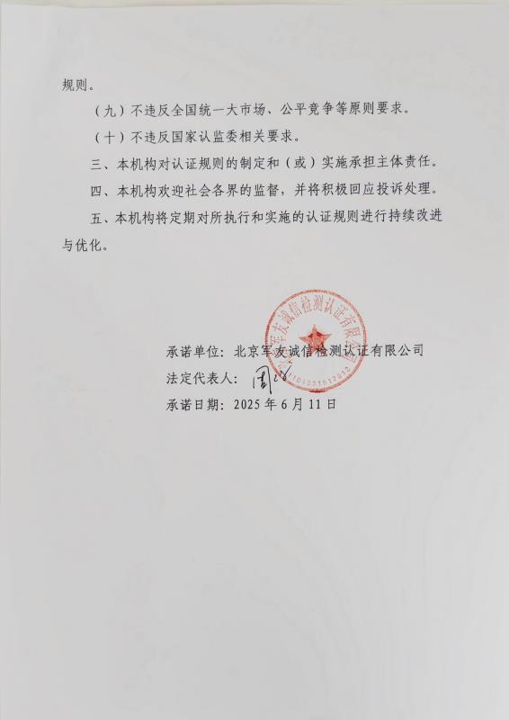 认证规则备案承诺书
